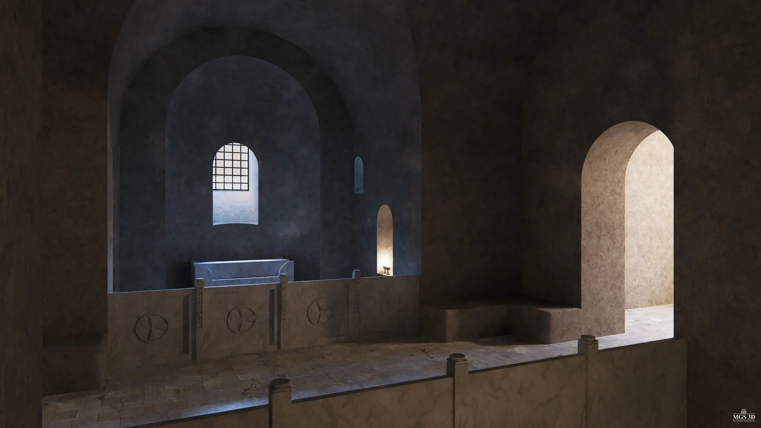 Reconstitution de l’ancien monastère Saint-Hilarion de Tell Umm el-‘Amr (bande de Gaza) datant du VIe siècle.